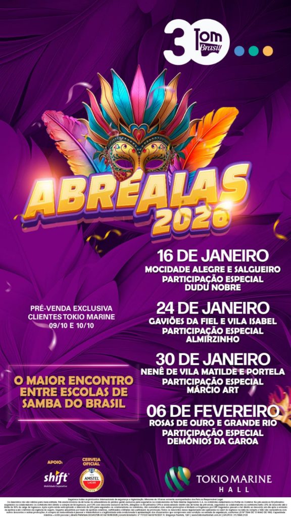 São Paulo se prepara para viver um momento histórico. A festa de pré-carnaval “Abre Alas 2026: O Maior Encontro entre Escolas de Samba do Brasil” promete transformar o palco do Tokio Marine Hall em uma verdadeira avenida, reunindo algumas das mais icônicas agremiações carnavalescas do Rio de Janeiro e de São Paulo em quatro noites inesquecíveis, com a participação de convidados especiais que trarão ainda mais brilho a esta celebração.