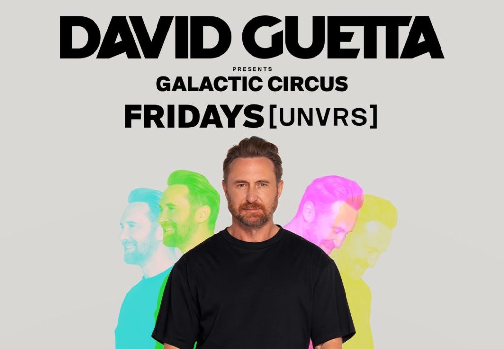 Em 2026, Guetta expande a escala e aprofunda a experiência do Galactic Circus, aproveitando ao máximo o poder técnico e a flexibilidade criativa do [UNVRS], com uma produção hipnotizante e uma pista de dança que se move em uníssono a uma jornada sonora que abrange hinos globais e a energia pulsante das pistas de dança.