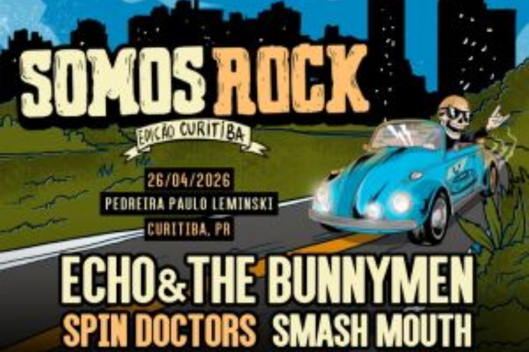 Line- up Somos Rock Festival 2026 em Curitiba:(Echo & The Bunnymen, Spin Doctors, Smash Mouth, Candlebox, Os Paralamas do Sucesso, Detonautas e Raimundos.