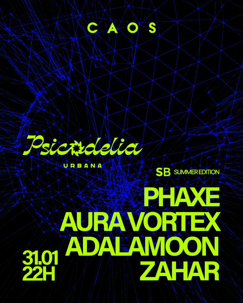 O retorno da Psicodelia Urbana traz uma noite dedicada à energia do psy, com PHAXE no comando, acompanhado de um line de peso e atmosfera totalmente única. Uma viagem sonora inesquecível.