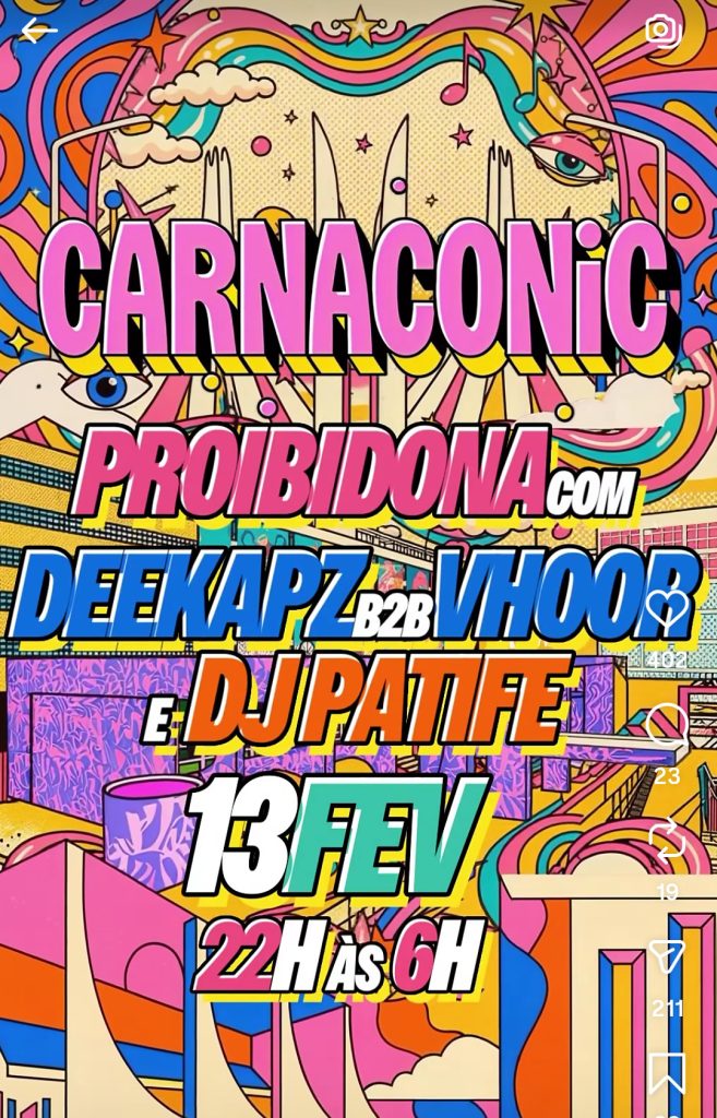 O Carnaconic abre oficialmente a pista do Carnaval no dia 13 de fevereiro, marcando o início da folia eletrônica em Brasília. Quem dá o start na programação são Deekapz, Deejay Patife e VHOOR, artistas que representam diferentes gerações e vertentes da música eletrônica brasileira.