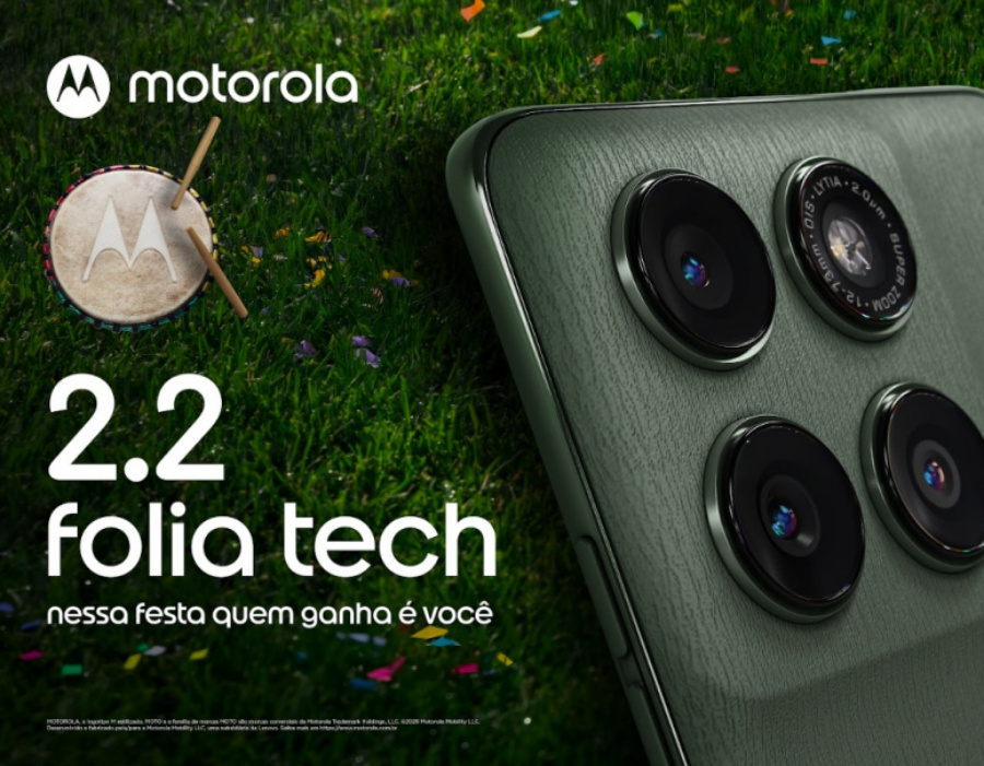 Para quem quer aproveitar o Carnaval conectado do primeiro ao último bloco, a Motorola anuncia a campanha “2.2: folia tech”. Aproveitando a data dupla 2/2, a marca trará preços especiais em smartphones e acessórios do seu ecossistema, com foco em durabilidade, qualidade de imagem e praticidade para o período da folia.