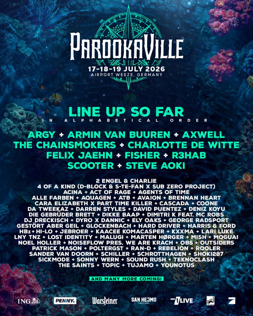 O PAROOKAVILLE abre seus portões no Aeroporto de Weeze, na Alemanha, de 17 a 19 de julho de 2026, para receber 225.000 pessoas na Cidade dos Sonhos. Após o anúncio dos primeiros headliners, incluindo Charlotte de Witte, Axwell, The Chainsmokers, FISHER e Scooter, a programação de 2026 continua a tomar forma. Este segundo anúncio de artistas adiciona mais cinco headliners, juntamente com diversos artistas alemães e internacionais, para completar ainda mais o espectro musical do maior festival de música eletrônica da Alemanha.