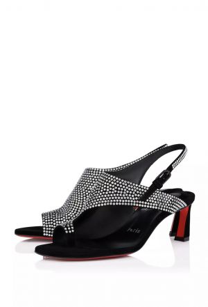 Quem opta pelo salto mais baixo, a sandália Viva Condora, em veludo adornado com strass prateados é a opção ideal.