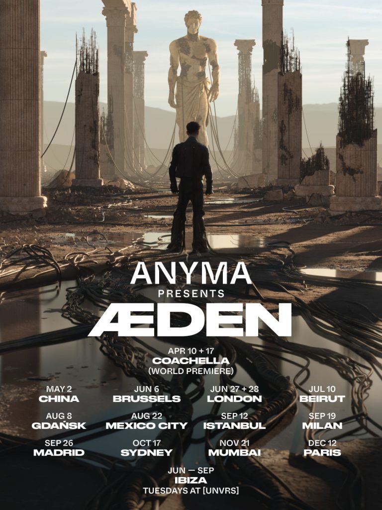 A residência no [UNVRS] faz parte da ÆDEN Global Tour 2026, que levará o novo show de Anyma a uma seleção limitada e cuidadosamente escolhida de palcos ao redor do mundo, após sua estreia como atração principal no Coachella. Em Ibiza, no entanto, ÆDEN se desdobra como uma experiência imersiva única, projetada para explorar ao máximo o poder da hiperclub, onde arquitetura, tecnologia, som e público interagem em tempo real para criar uma conexão direta e consciente com a pista de dança.