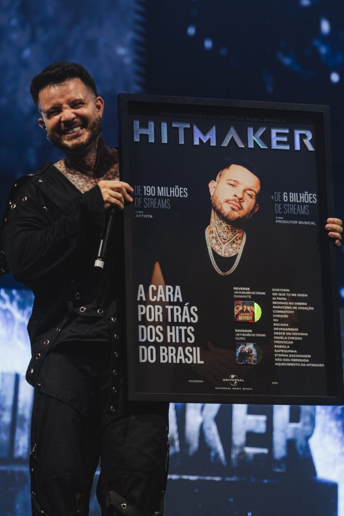 Durante sua apresentação no Camarote Salvador neste sábado de Carnaval, em Salvador (BA), o HITMAKER recebeu uma homenagem especial da Universal Music Brasil, reforçando sua relevância na música pop e urbana brasileira.