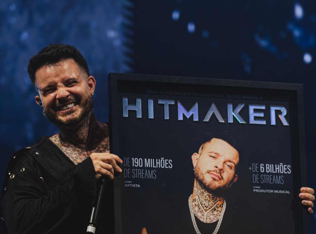 Durante sua apresentação no Camarote Salvador neste sábado de Carnaval, em Salvador (BA), o HITMAKER recebeu uma homenagem especial da Universal Music Brasil, reforçando sua relevância na música pop e urbana brasileira.