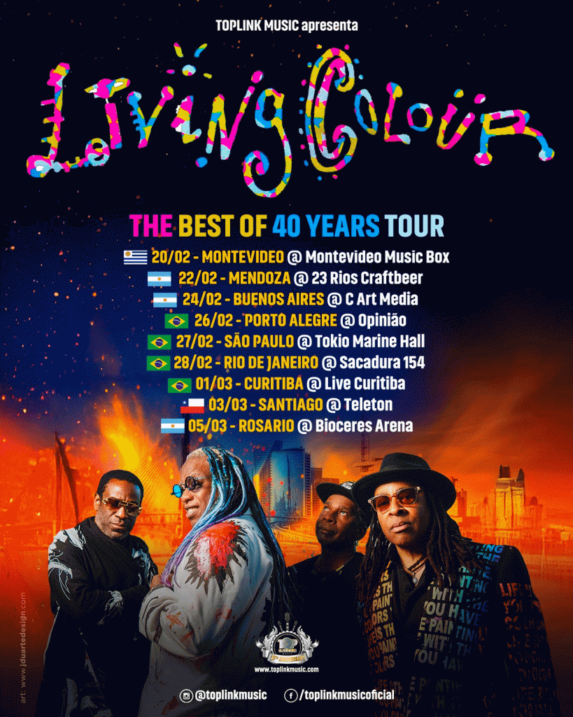 O Living Colour deu início à etapa latino-americana da “The Best Of 40 Years Tour” em 20 de fevereiro, com show no Montevideo Music Box, em Montevidéu (Uruguai). A apresentação marcou a largada da turnê que passa por Argentina, Brasil e Chile nesta sequência de datas de 2026. A produção da turnê é da Top Link Music.
