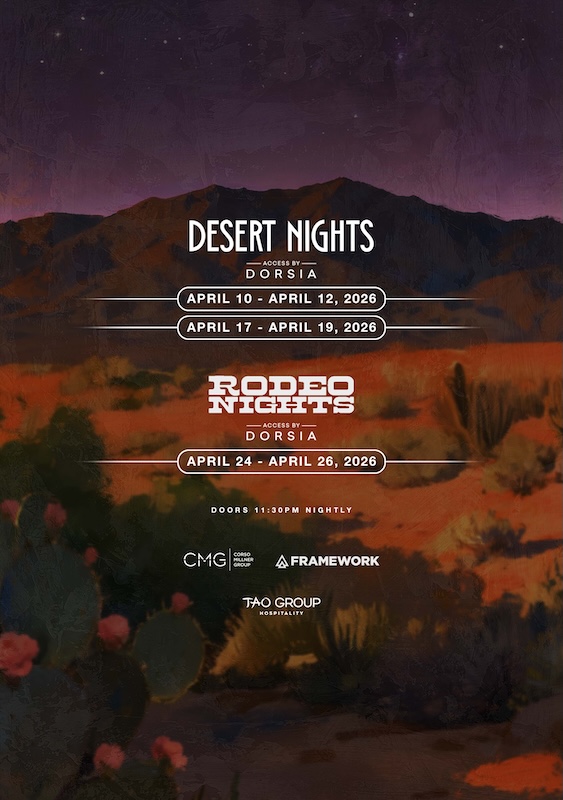 Ao longo dos três fins de semana do festival Indio, a Framework também coproduzirá as séries de afterparty Desert Nights e Rodeo Nights na propriedade privada Zenyara, em parceria com o Corso Marketing Group. Realizadas de sexta-feira, 10 de abril, a domingo, 12 de abril; de sexta-feira, 17 de abril, a domingo, 19 de abril; e de sexta-feira, 24 de abril, a domingo, 26 de abril de 2026, as Desert Nights e Rodeo Nights reafirmarão seu status como o ponto de encontro definitivo entre a cultura dos festivais, a vida noturna de luxo e o magnetismo das celebridades. Mais detalhes serão anunciados em breve.
