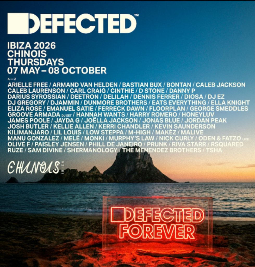 Com line-ups semanais e convidados especiais ainda a serem revelados ao longo da temporada, a mudança da Defected para o Chinois já se desenha como uma das residências mais comentadas de Ibiza em 2026.
