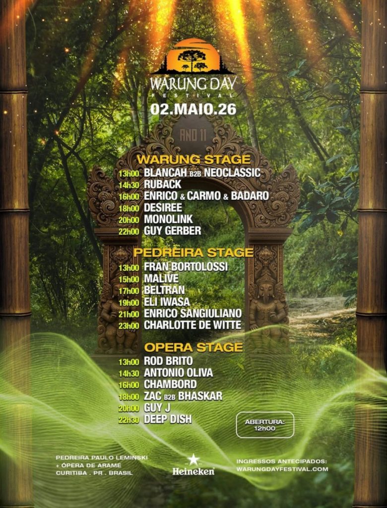 Curitiba, março de 2026 — O Warung Day Festival está de volta e, como sempre, com uma programação imperdível. A organização do festival de música eletrônica mais conceituado do brasil acaba de anunciar a programação completa de sua edição 2026, além dos três palcos do festival, reafirmando seu lugar como um dos eventos musicais mais respeitados do mundo.