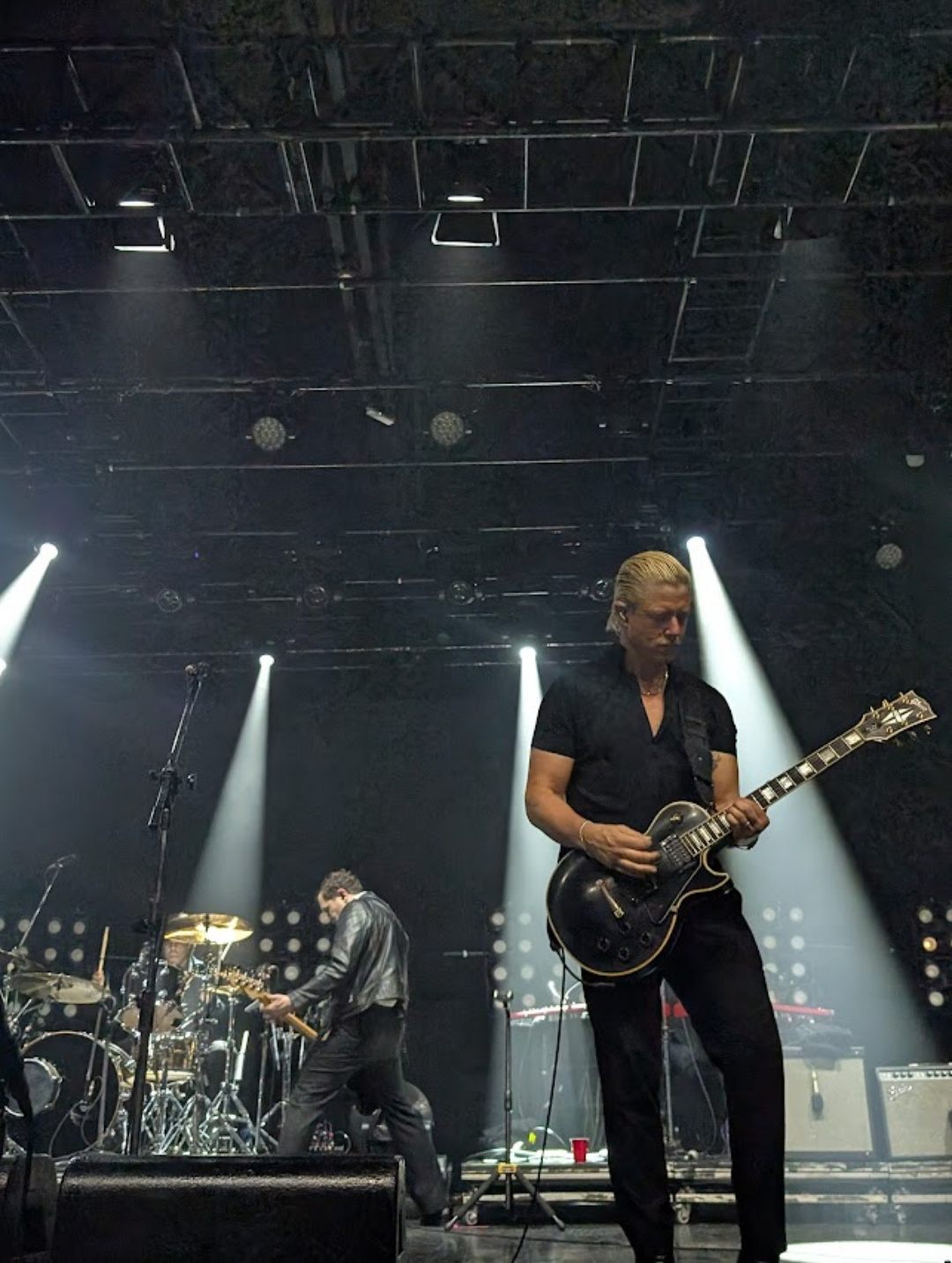 Já Daniel Kessler foi um espetáculo à parte. Seu jeito de tocar guitarra segue sendo uma assinatura única: cada riff parece menos uma imposição e mais um convite — como se chamasse o público para dançar dentro daquela atmosfera fria e noturna. Em faixas como “Narc” e “The Rover”, sua interação com o espaço sonoro foi quase coreográfica.