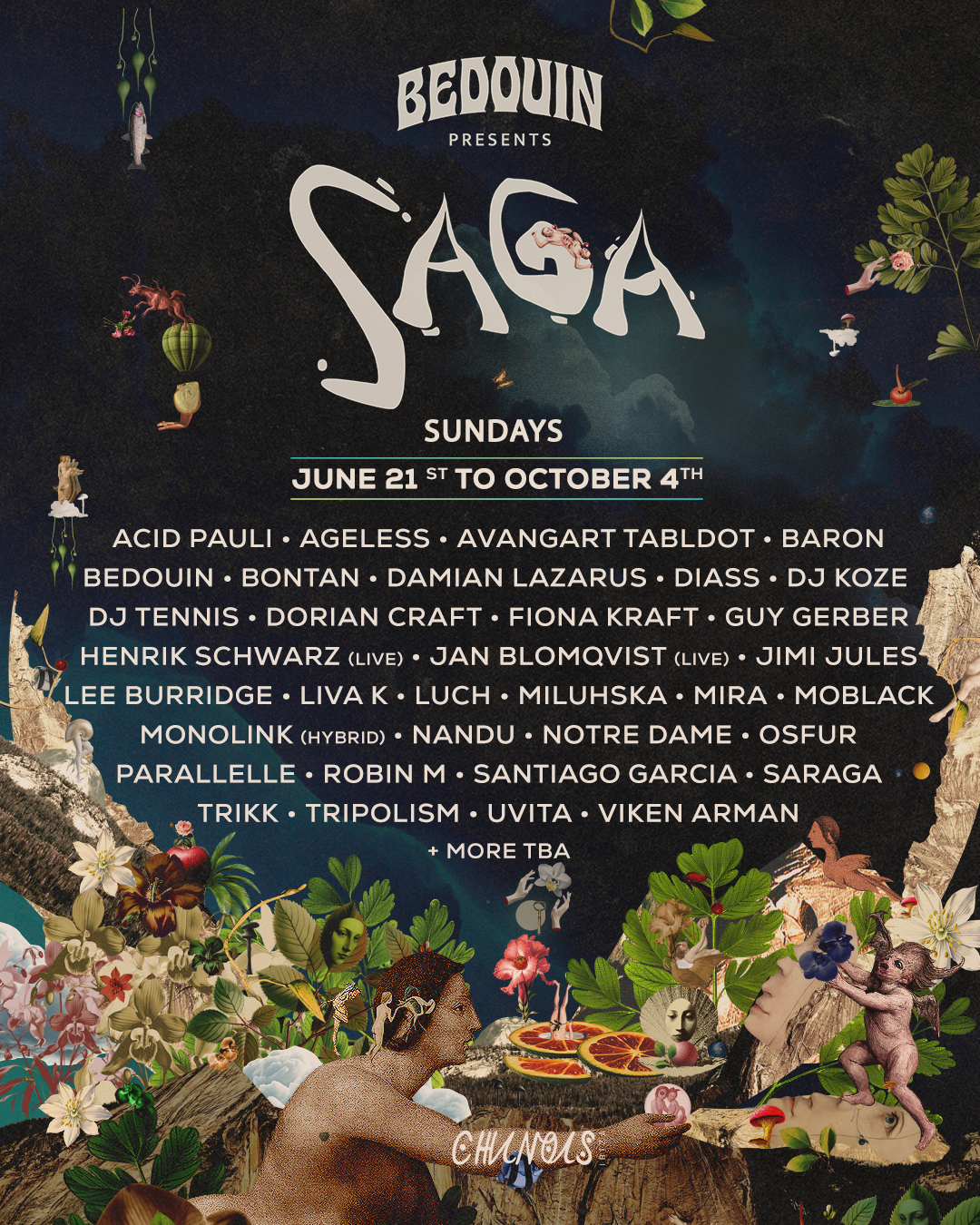 Juntando-se a eles ao longo do verão, uma programação rica e diversificada, cuja lista completa inclui: Acid Pauli, Ageless, Avangart Tabldot, Baron, Damian Lazarus, Diass, DJ Koze, DJ Tennis, Dorian Craft, Fiona Kraft, Guy Gerber, Henrik Schwarz (ao vivo), Jan Blomqvist (ao vivo), Jimi Jules, Lee Burridge, Luch, Miluhska, Mira, Monolink (ao vivo), Notre Dame, Osfur, Robin M, Tripolism, Trikk, Uvita e Viken Arman – cada um cuidadosamente selecionado para refletir a fusão de gêneros e a sonoridade com influências globais que definem a SAGA.