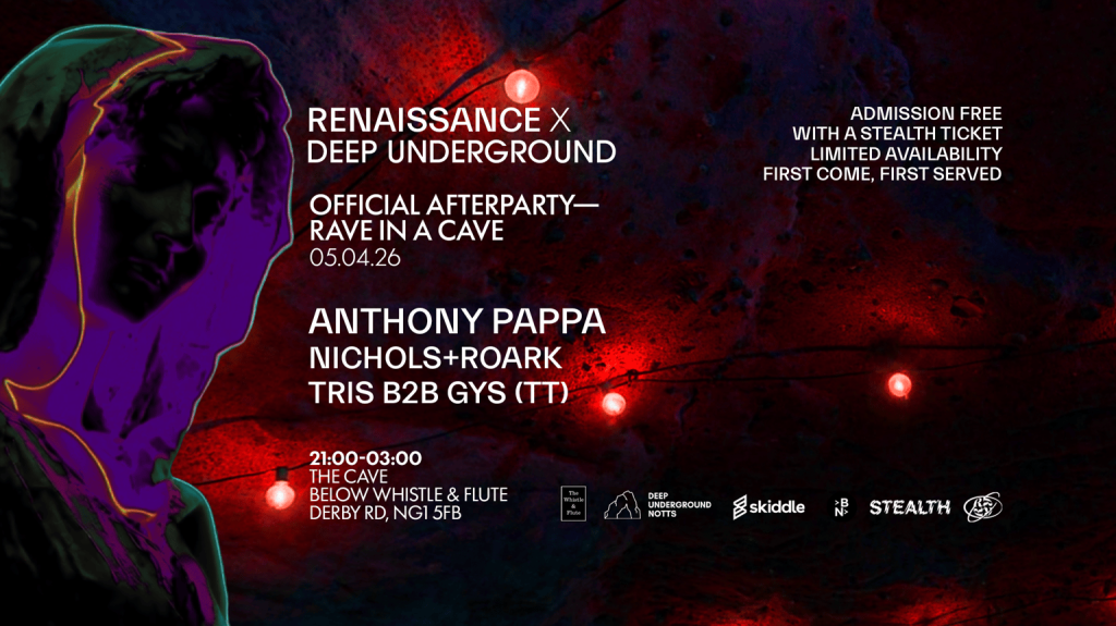 Nesta Páscoa, a Renaissance toma conta do Stealth Nottingham para uma jornada de um dia inteiro com 3D, Dave Seaman, Darren Emerson e Danny Howells, além de Lloyd Barwood e outros.