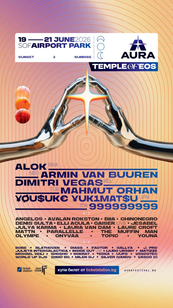 O AURA Festival retorna ao Sofia Airport Park para sua segunda edição ampliada, Temple of Eos, apresentando 23 novos artistas, dois palcos adicionais e produção aprimorada, incluindo uma nova categoria de ingressos BACKSTAGE.
