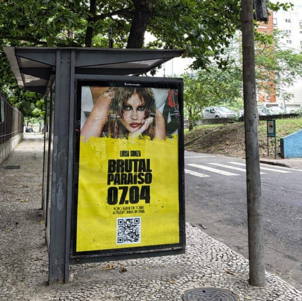 Mais do que uma escolha de mídia, a presença nas ruas reforça o conceito central do projeto. Ao levar ‘Brutal Paraíso' para o OOH, a campanha insere o álbum no mesmo ambiente que inspira sua narrativa: a cidade. A escolha de ocupar o mobiliário urbano resgata as raízes de Luísa, que no início da carreira cantou na Avenida Paulista, e reforça o impacto visual de elementos arquitetônicos presentes na obra, como as menções a Oscar Niemeyer.