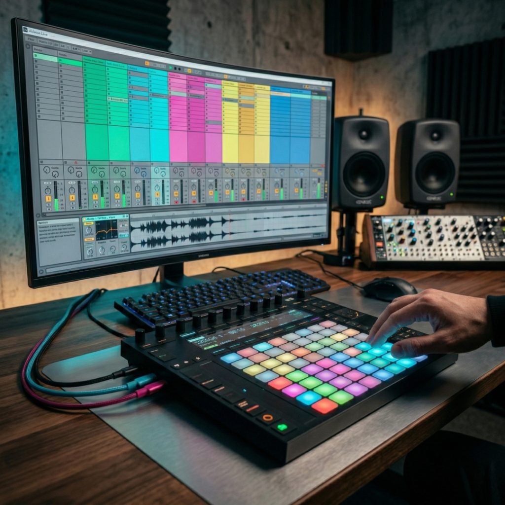 Ableton Live é referência em sets ao vivo, manipulação de loops e improvisação sonora.