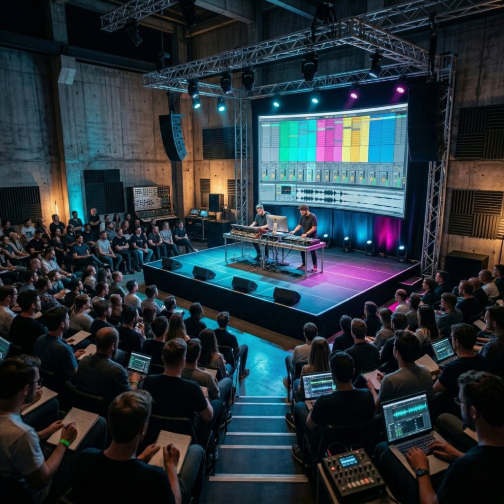 Seus cursos oficiais e certificações Ableton Certified Training Program garantem que o artista domine desde arranjos até efeitos avançados de áudio.