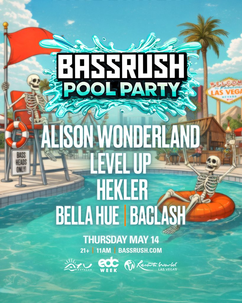 A pressão na piscina está no ar 🌊 A Bassrush Pool Party chega ao AYU Day Club na quinta-feira, 14 de maio, para uma festa imperdível durante a EDC Week, repleta de sons quentes, graves potentes e muita energia