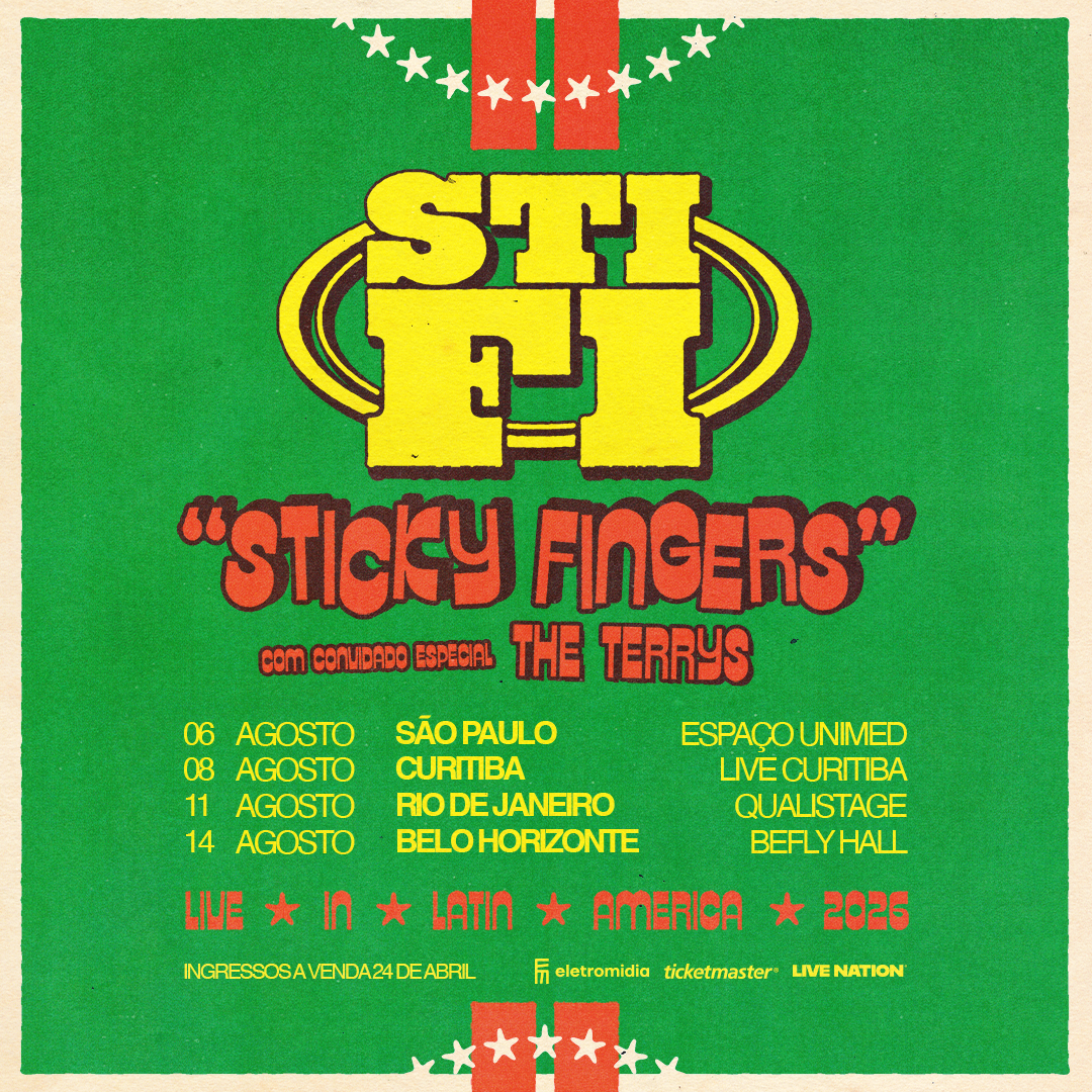 A aguardada série de shows marca o retorno da banda ao Brasil desde 2022 e conta com The Terrys como convidado especial. No repertório das apresentações do Sticky Fingers estarão todos os sucessos da carreira, incluindo desde os primeiros hits aos mais recentes.