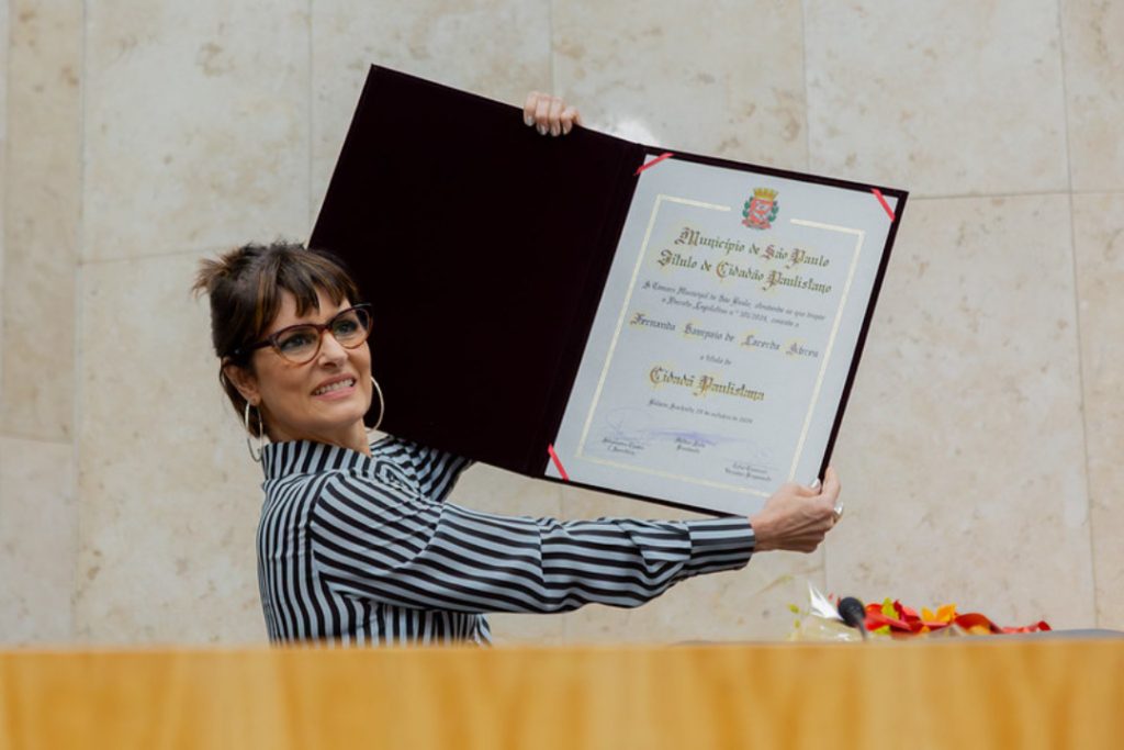 Fernanda Abreu decreta o fim da rivalidade Rio x São Paulo ao receber o título de Cidadã Paulistana no último dia 23 de abril, na Câmara Municipal de São Paulo.