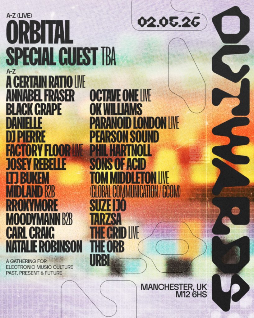 Outwards , um novo festival que acontecerá em Manchester no sábado, 2 de maio de 2026. Um evento ao ar livre no centro da cidade, que explorará o passado, o presente e o futuro da cultura da música eletrônica.