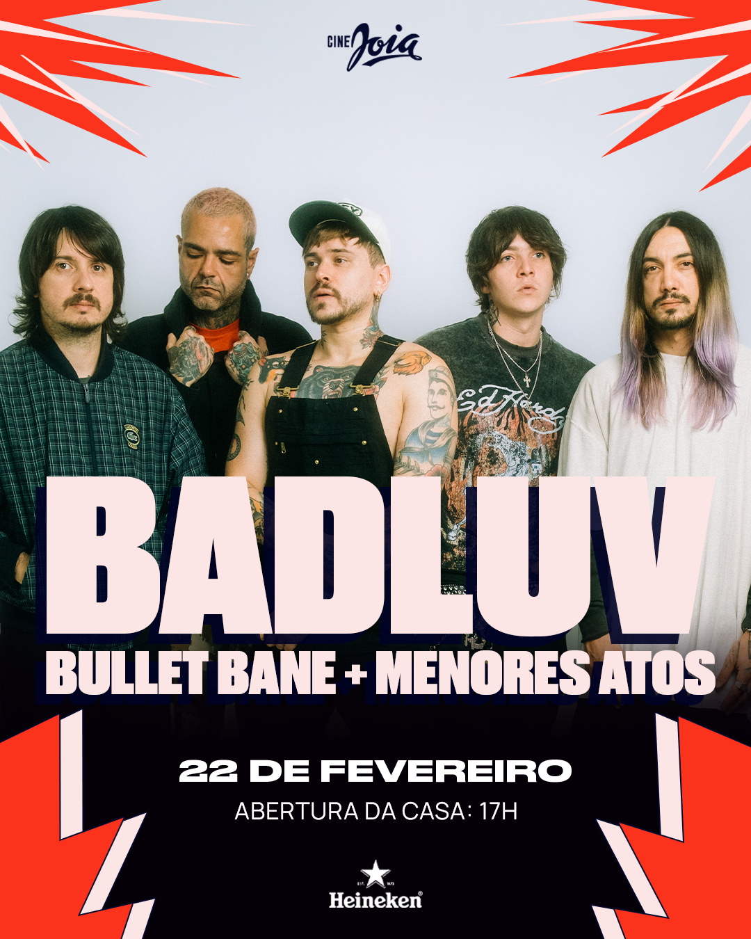 A BAD LUV volta a São Paulo no próximo dia 22 de fevereiro para uma noite de celebração e muito rock ao lado das bandas Bullet Bane e Menores Atos. A apresentação faz parte da programação comemorativa dos 15 anos do Cine Joia — uma das casa de shows mais emblemáticas da capital — e dá continuidade à turnê “NÓS”, que leva ao público as músicas do álbum homônimo lançado por João Bonafé, Murilo Amancio, Vitor Peracetta, Gee Rocha e Caio Weber em agosto de 2025.